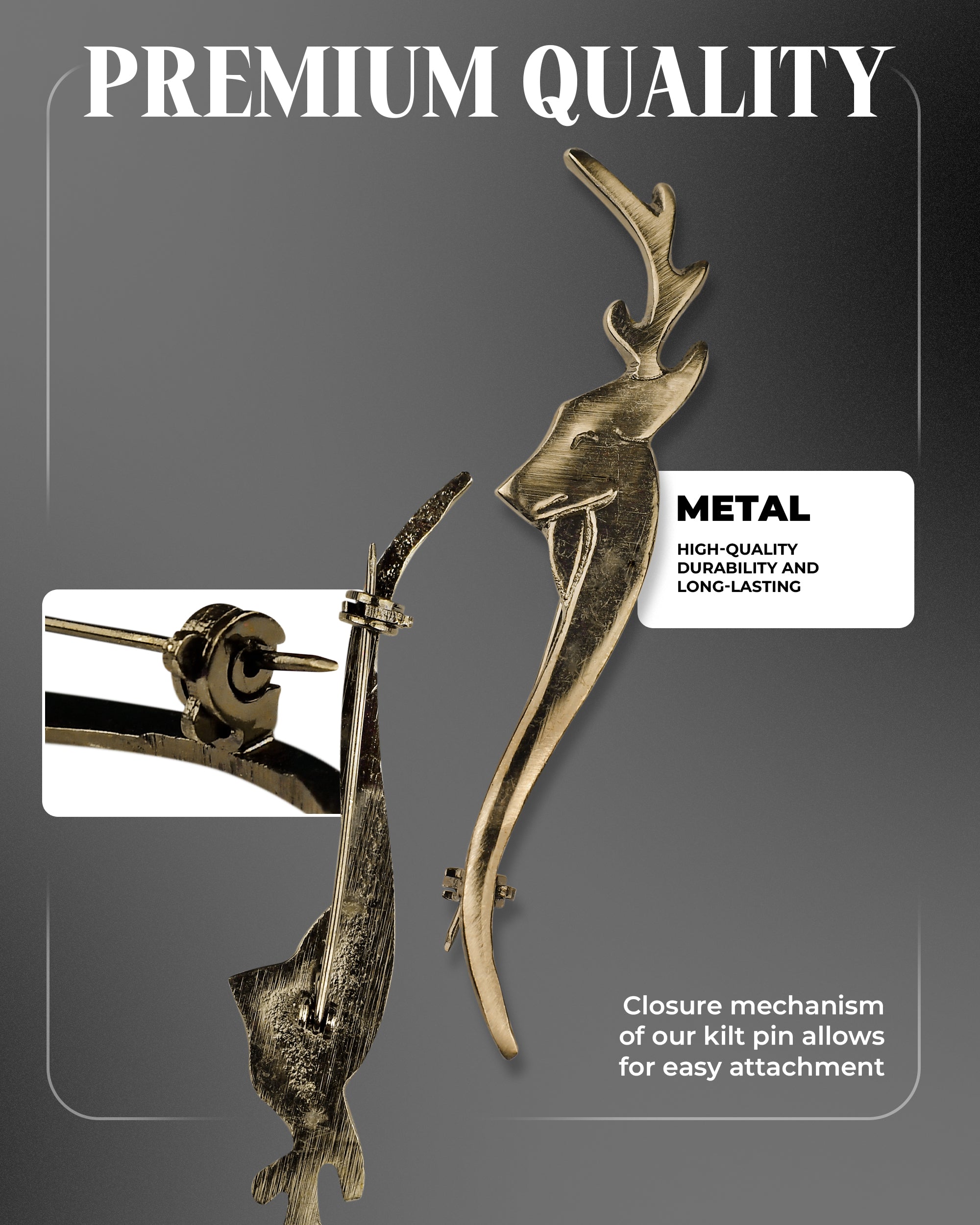 Scottish Kilt Pin for men | Stag Head Pewter Antique