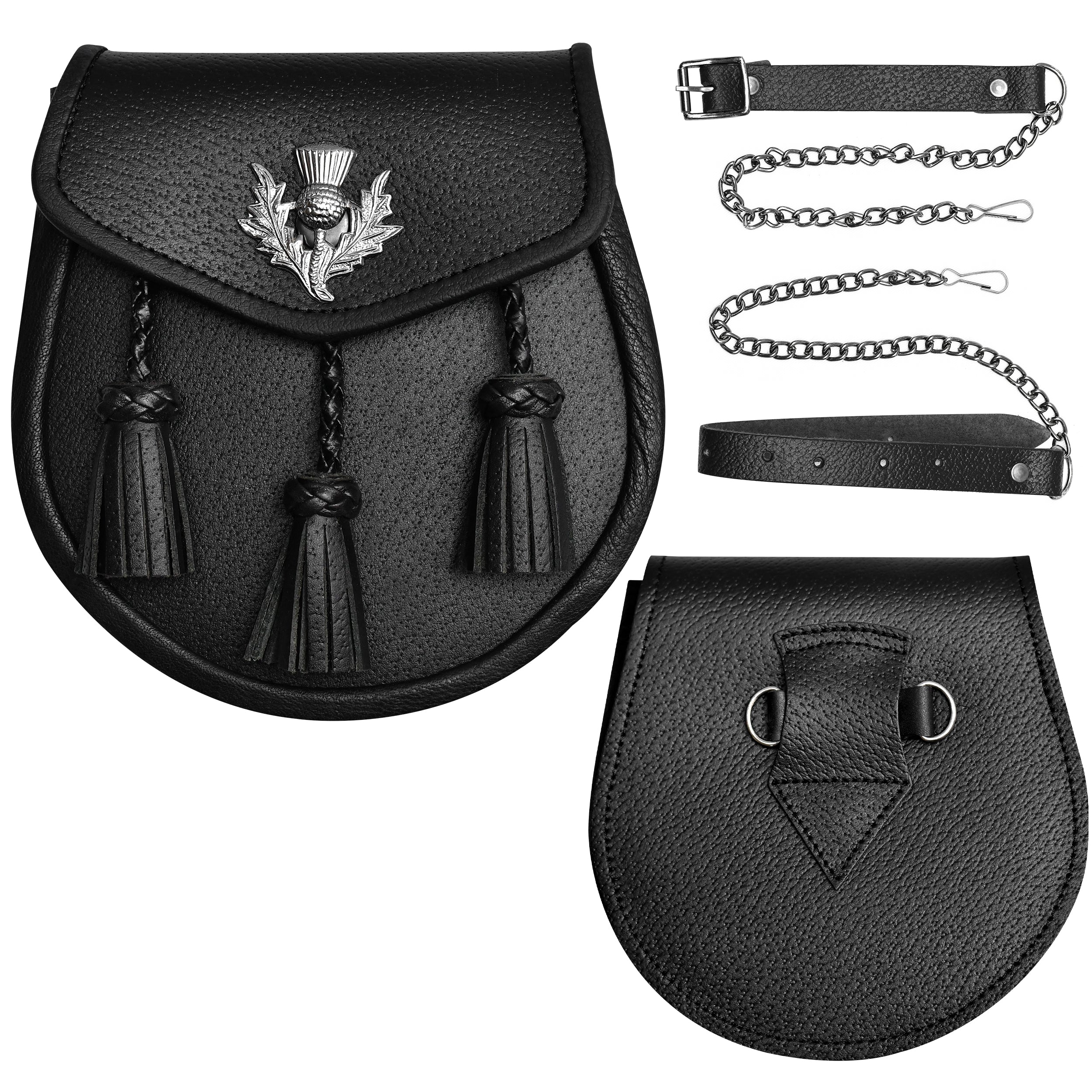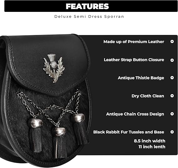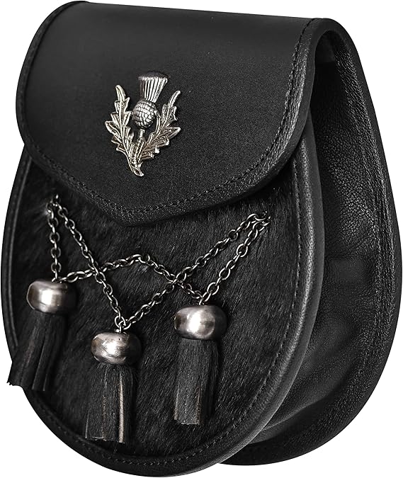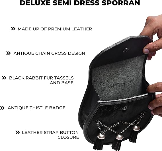 Semi Dress Leather Sporran w/ Thistle Badge I Black Plain