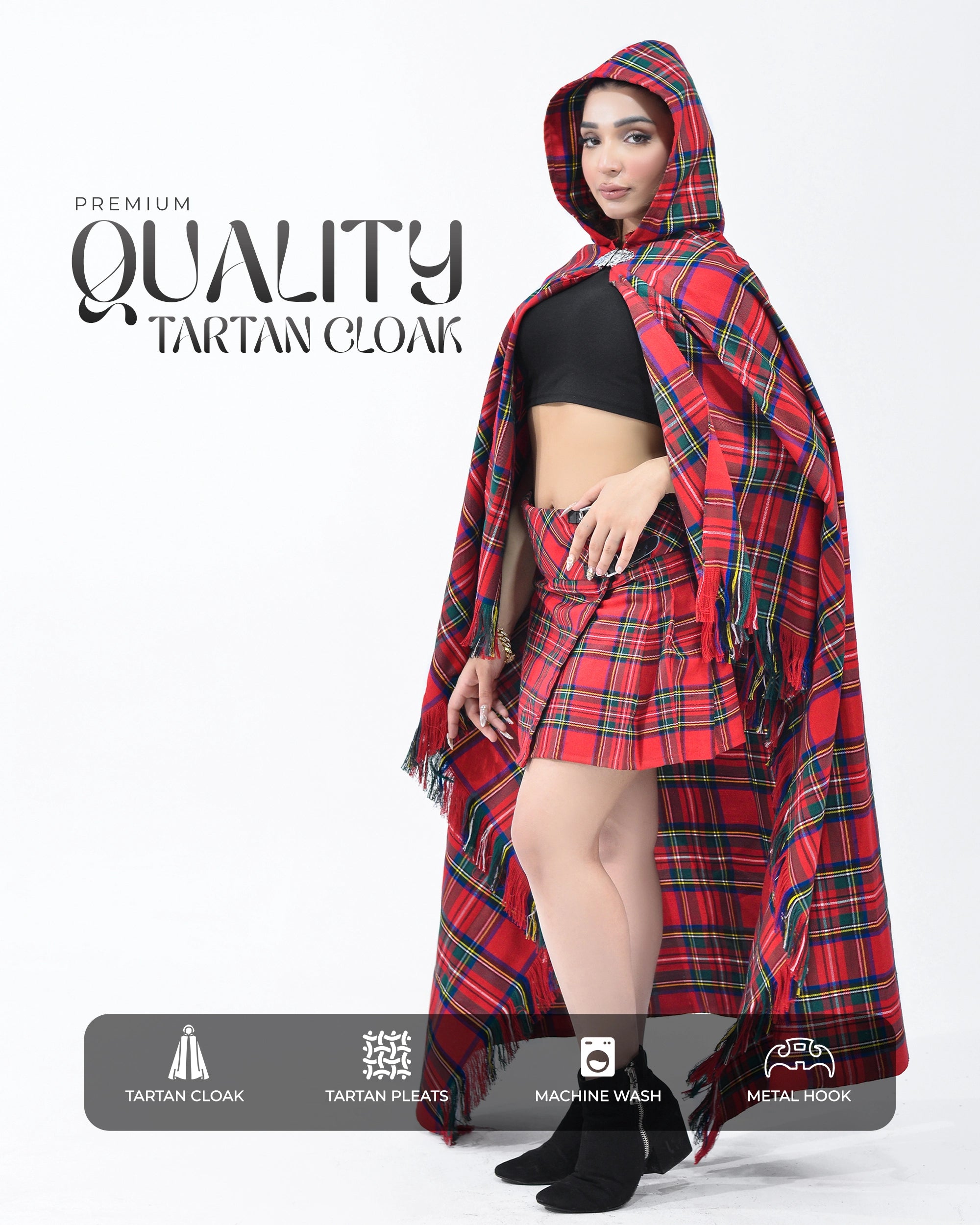 Highland Redstone carefully selects high-quality fabrics for these Scottish tartan cloaks, ensuring exceptional comfort and long-lasting durability. Our Highland Hooded Cloaks are a customer favorite, known for their premium polyester-viscose blend. This material is not only easy to care for but designed to last for years, making it an essential addition to any wardrobe. Whether you're looking for a Scottish tartan cloak, a durable hooded cloak, or a versatile piece for everyday wear, Highland Redstone delivers the best in style, quality, and longevity.
