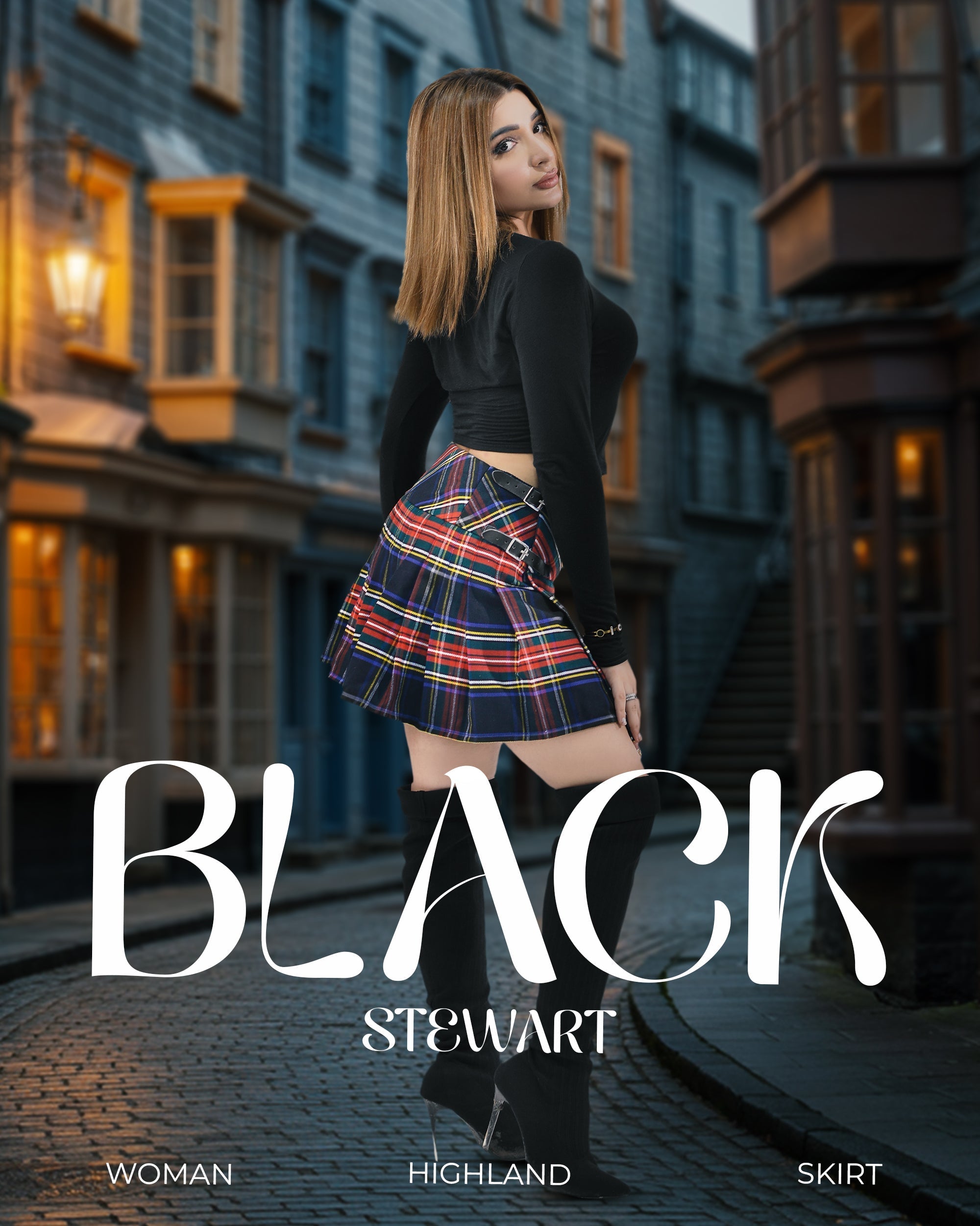 Women's Tartan Billie Skirt | Black Stewart